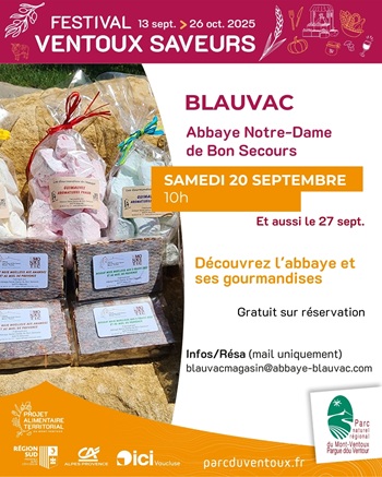 Gratuit - sur réservation Réservations par email uniquement : blauvacmagasin@abbaye-blauvac.com
