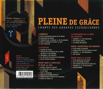 Ce CD vous présente des chants de différentes abbayes cisterciennes en l'honneur de la Vierge Marie, ainsi que de brefs textes des plus grands auteurs cisterciens médiévaux, regroupés autour de cinq thèmes :