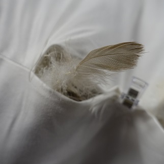 Tout frottement tend à écarter les fibres du tissu de l’enveloppe et peut faciliter le passage des plumes : n’utilisez ni brosse, ni aspirateur.